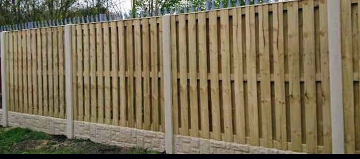 INCLUDES 10 fence panels, 10 rockface gravel boards and 11 x concrete posts.